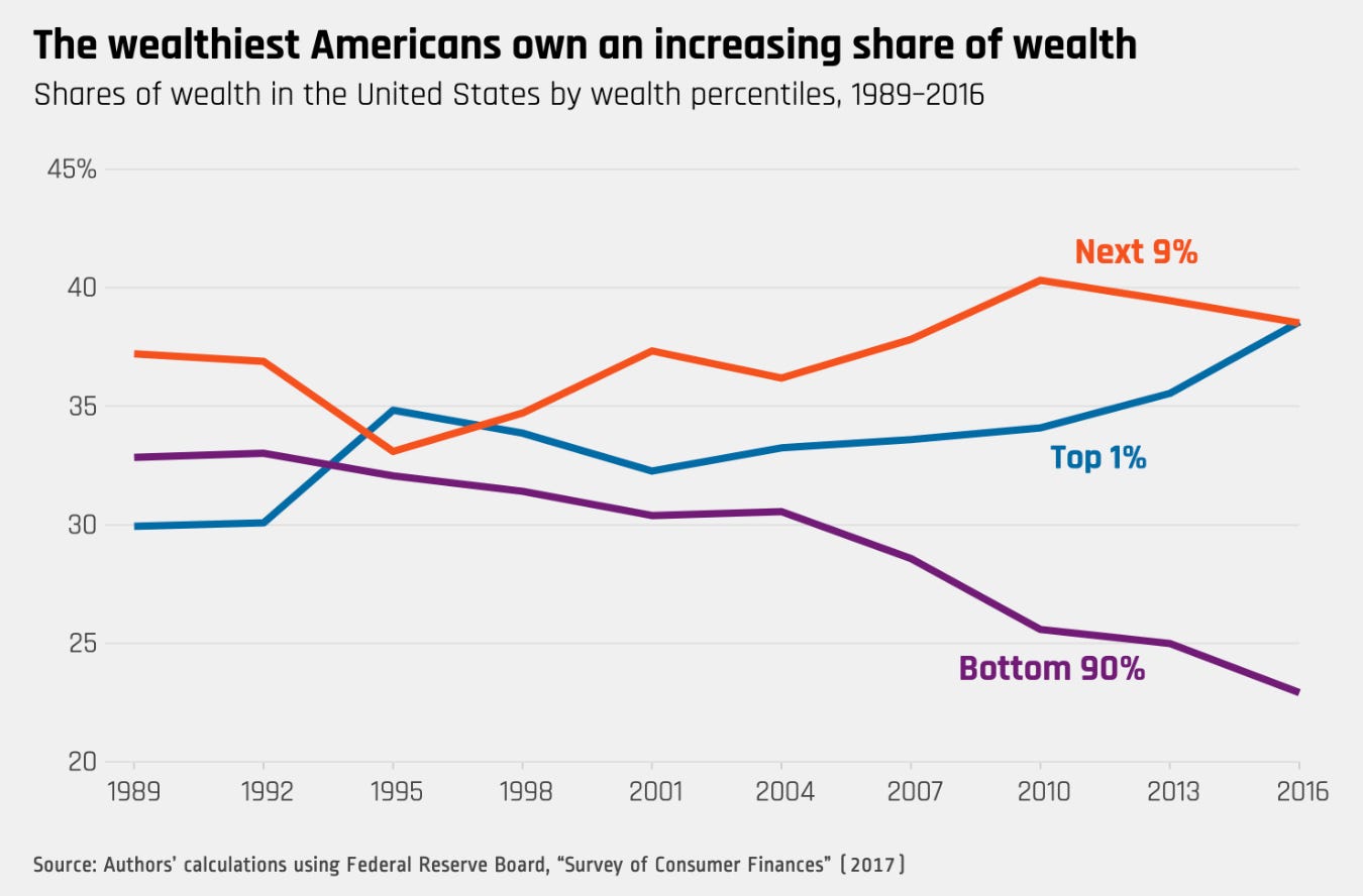 Wealth inequality is a well documented problem in the United States, and more broadly across the world. The United States exhibits wider disparities of wealth between the rich and poor than any other major developed nation. This rise in wealth inequality over the past 30 years has largely been a function of monetary policy fueling a series of asset price bubbles.